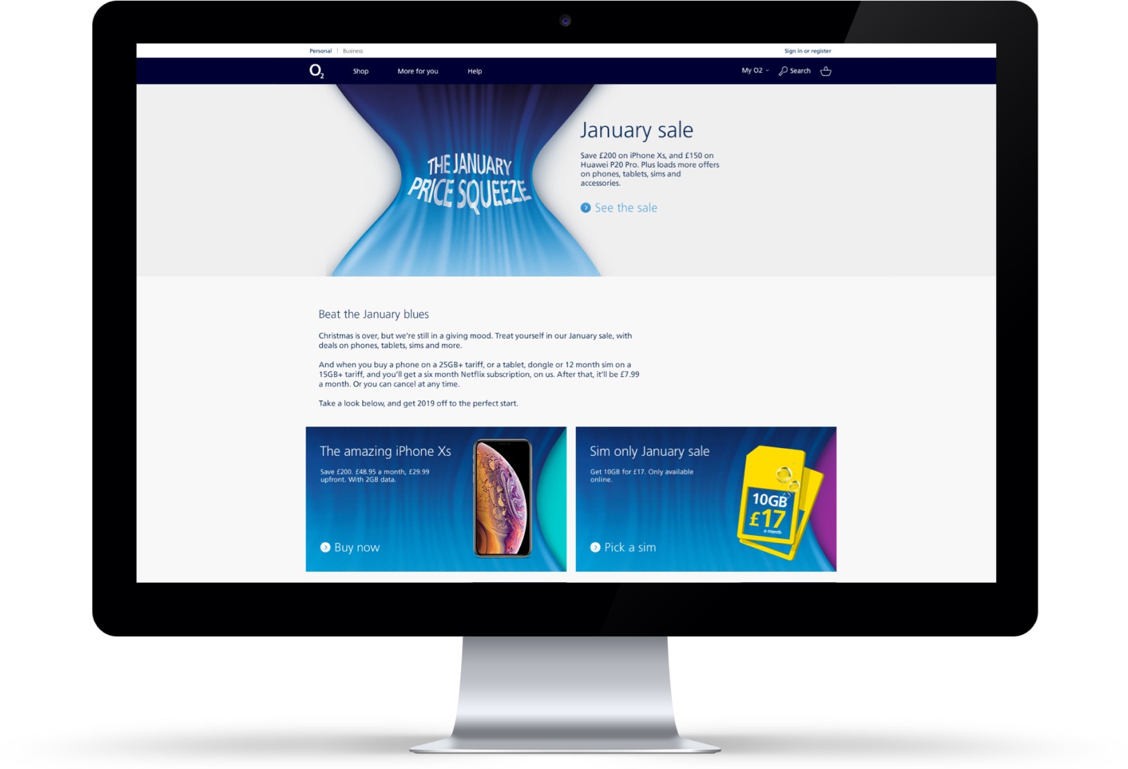 The campaigns had a significant impact on the online consumer market. Design assets were implemented on the Shop and Portal homepage. Each campaign performed well, with the January Sale campaign achieving the highest turnover in O2's pay monthly volume and value performance since 2019. As the lead designer, I created production-ready design assets featured on the Shop and Portal homepage.