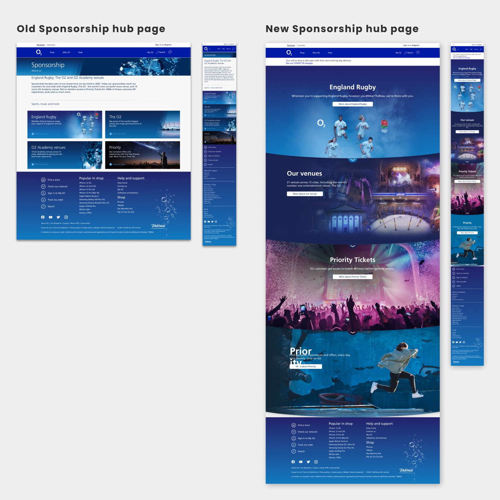 O2's sponsorship deals are highly valuable brand assets. However, the Sponsorship area on the website lacked the desired level of inspiration for such a prominent asset. I was tasked with redesigning the Sponsorship page using the latest O2 brand elements.